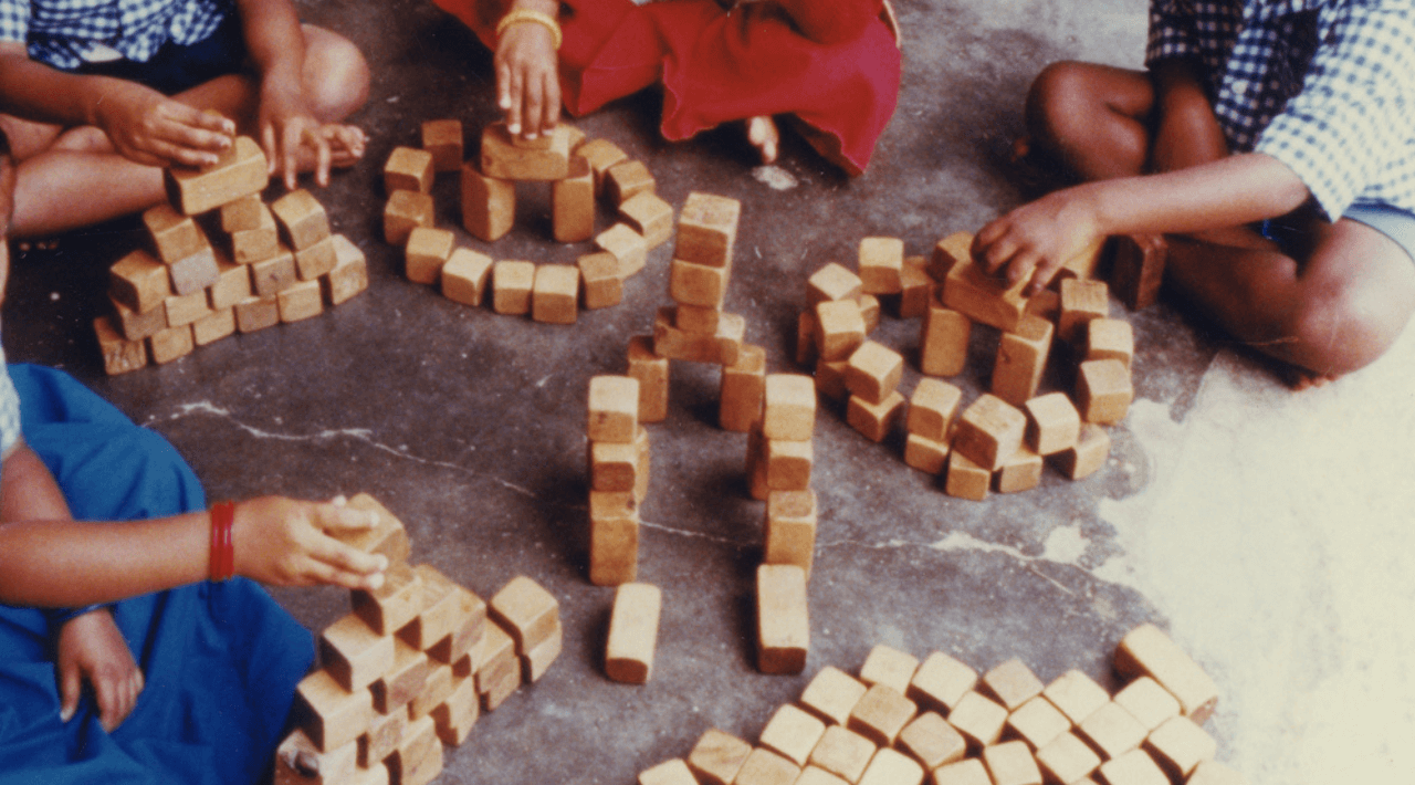 Untitled (Children Stacking Wooden Blocks); T. S. Satyan; India; c. Late 20th century; Colour inkjet print; 12.7 x 17.4 cm; Gifted by the T. S. Satyan Family Trust. Courtesy of Museum of Art & Photography (MAP), Bengaluru
