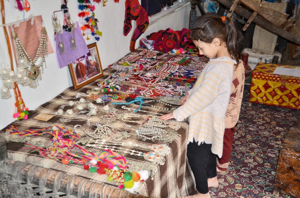 For example, there are livelihood objects such as herding tools, and the charka; then come those artefacts that reflect domestic heritage, such as the tabakh (utensil), peeda (chair), and chader (blanket). The museum also has numerous wearable items, from traditional tribal dresses to different types of jumkas (earrings), guchas (beaded jewellery), dolada (long silver necklace), mehal (close fitting ornamental necklace), among other things. Other objects on display are markers of the language and memory associated with Gojri heritage, such as recordings of folk songs, proverbs, and Gojri poetry. Instruments of faith and tradition, including some old musical instruments, amulets, and festive artefacts, are also on display.